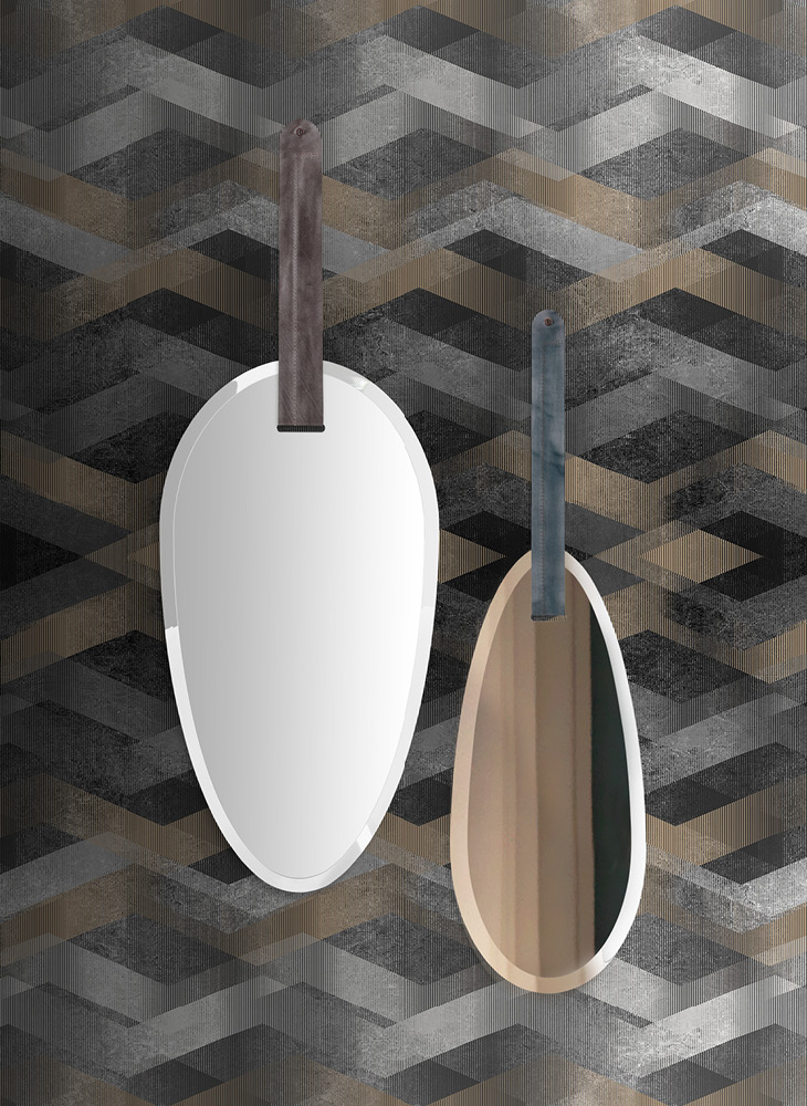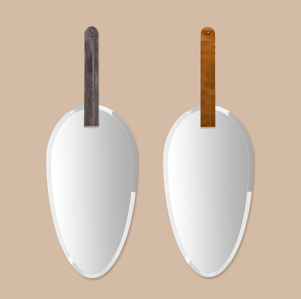MIRROR WITH BEVELED EDGE AND LEATHER BAND WITH SPECIAL EMBROIDERY R2.