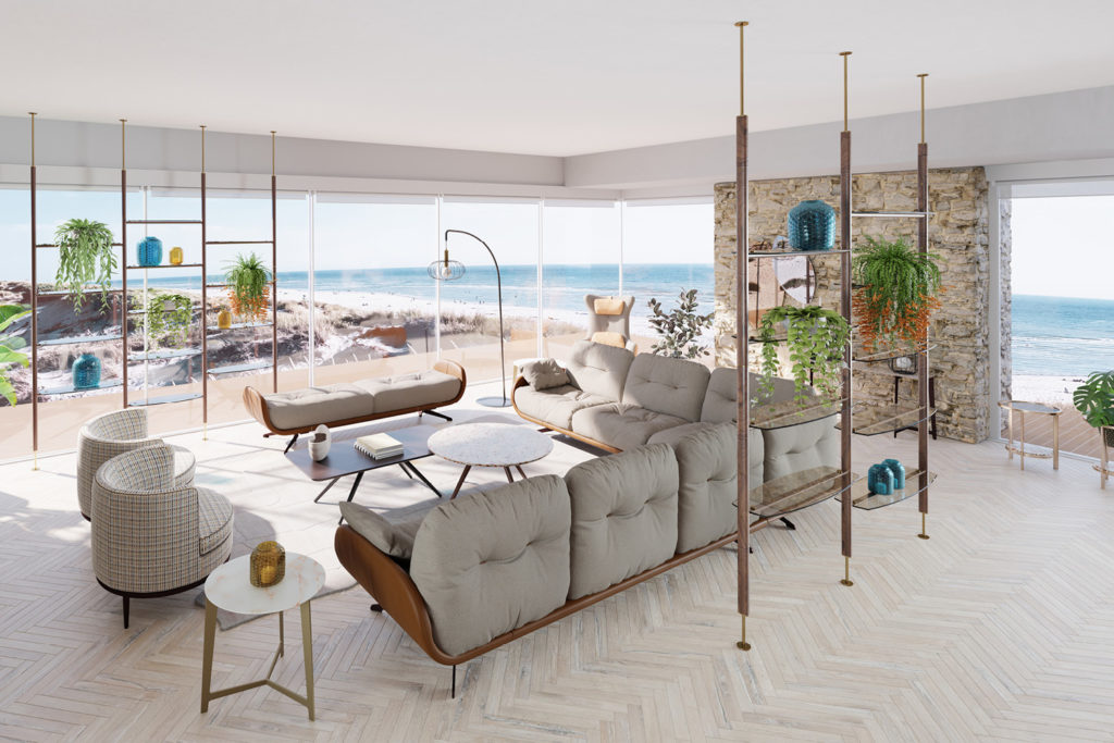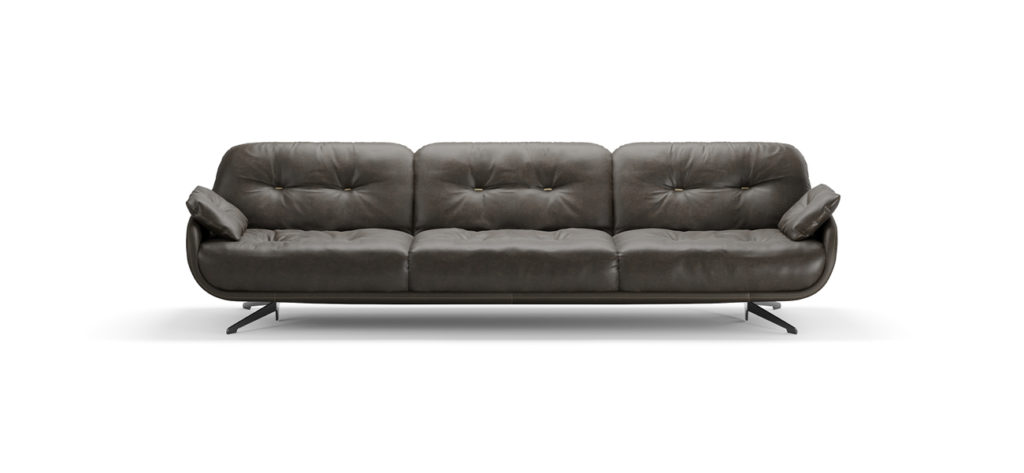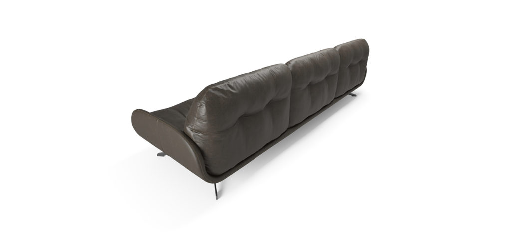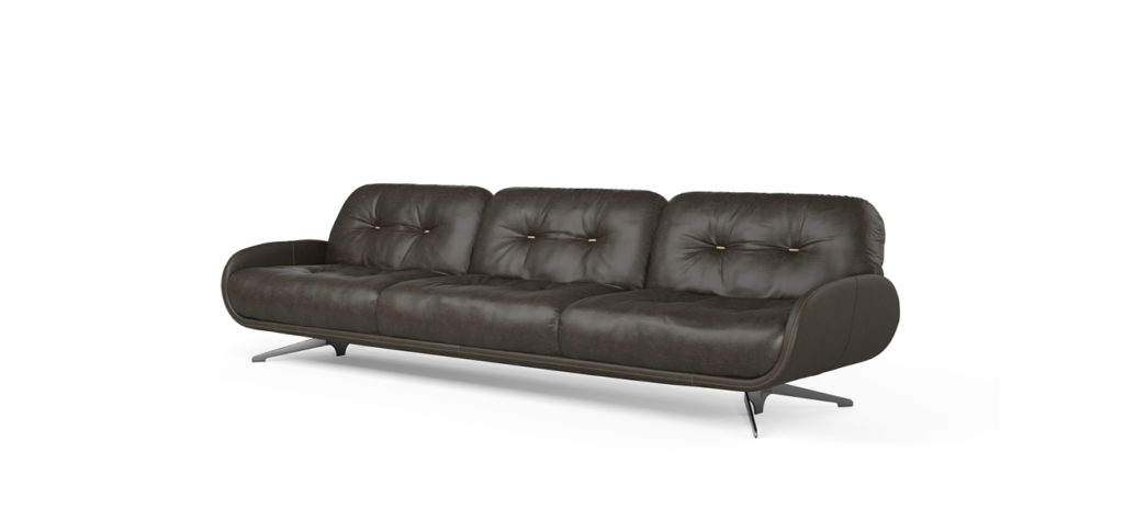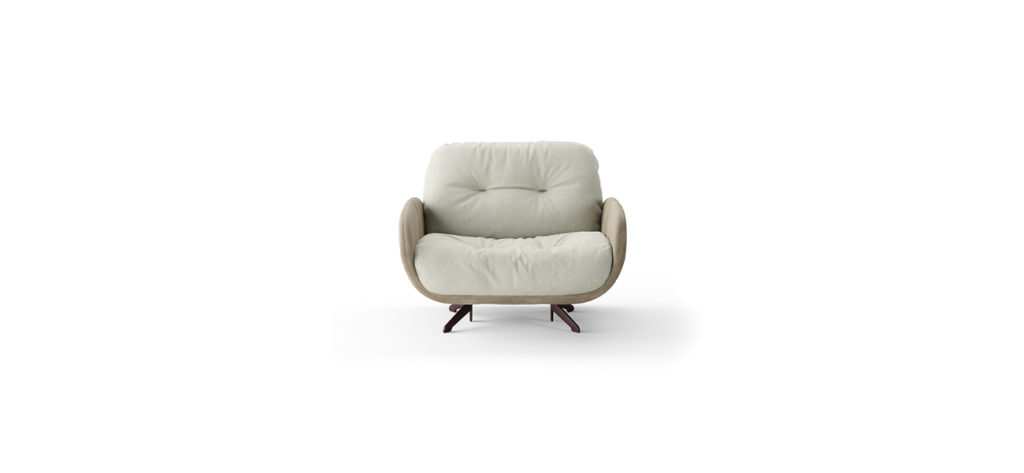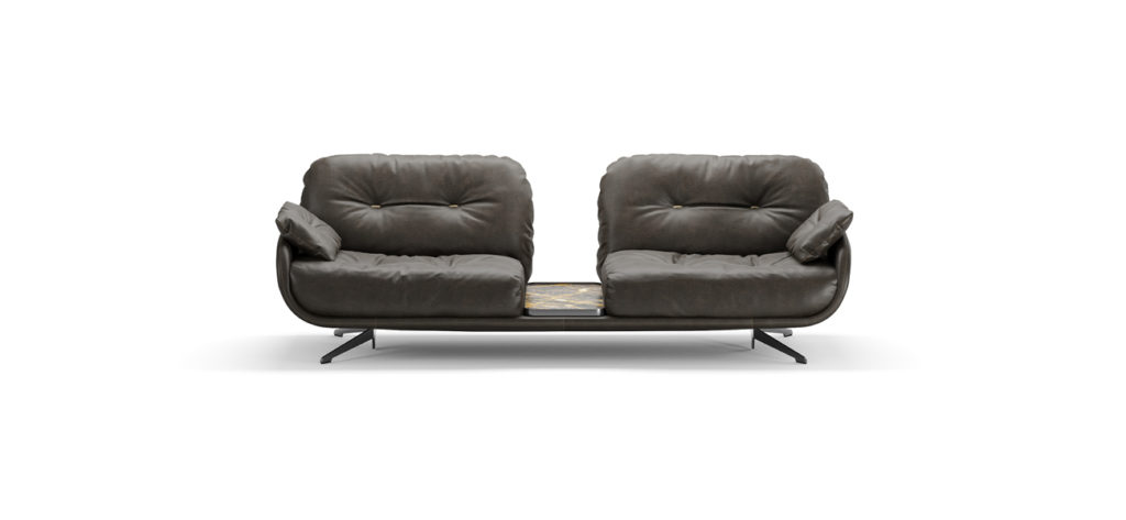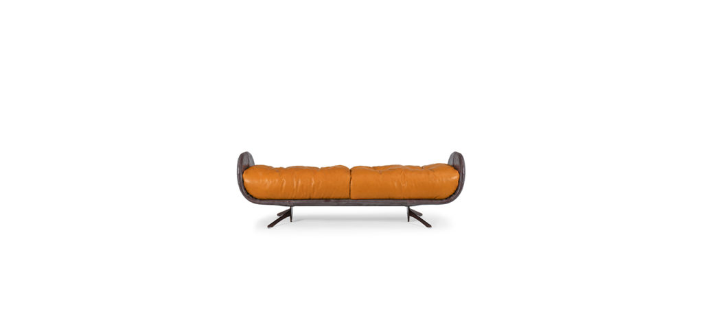PAST AND PRESENT, TRADITION AND INNOVATION COMBINE IN AYTON, AS THE STRICT LINES OF THE SUPPORT CONTRAST WITH THE SOFT CURVES OF THE UPHOLSTERY, THE SMOOTH SURFACES COMBINE WITH SOFT FABRICS, AND THE FINEST LEATHERS WITH REFINED YARNS. THE AUSTERITY OF THE FRAME, INSPIRED BY NORDIC GEOMETRIES OF THE ’50S, FADES INTO THE INFORMAL COMFORT OF THE CONTEMPORARY SEAT AND BACKREST. LIKE A FLYING CARPET, THE STRUCTURE RISES FROM THE GROUND IN A HORIZONTAL PLANE AS IF IN A SHELL THAT ENCLOSES A SOFT AND WELCOMING HEART. AYTON IS A FULLY MODULAR COMPOSITION OF SEATS AND SHELFS THAT NATURALLY ADAPTS TO EVERY SPACE, FROM DOMESTIC TO PUBLIC.
