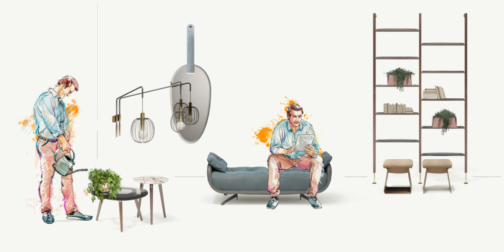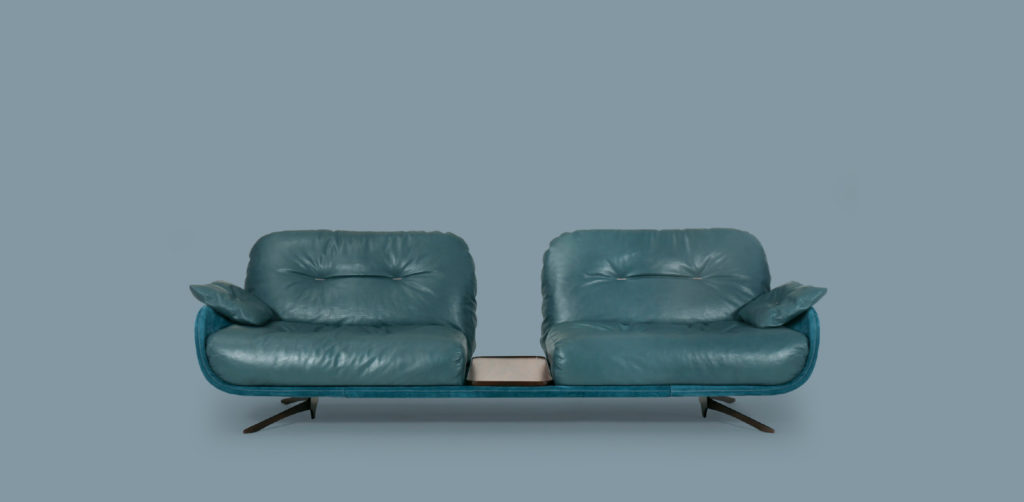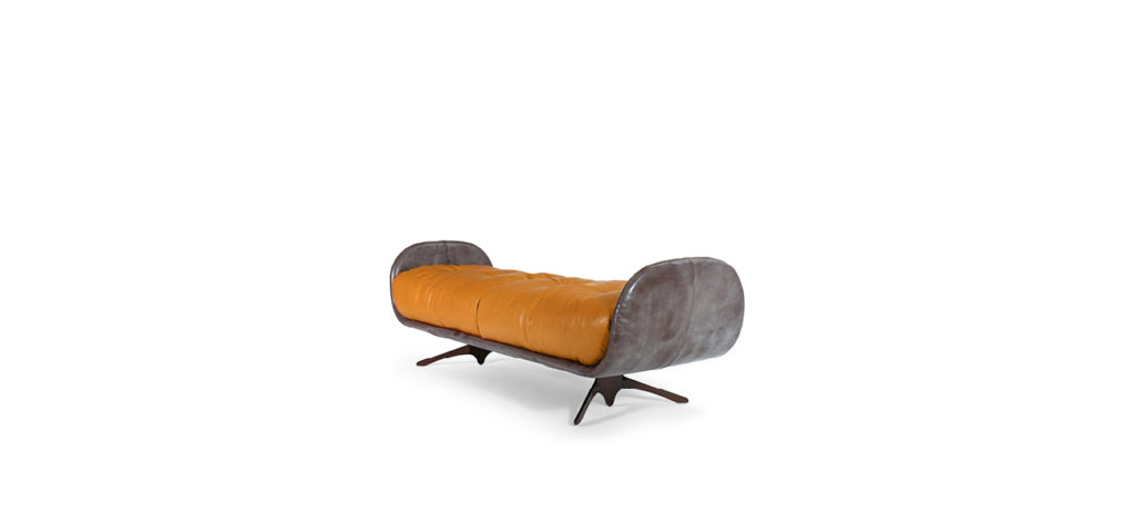 SMALL BENCH THAT IS PART OF THE AYTON SEATING SYSTEM WHERE PAST AND PRESENT, TRADITION AND INNOVATION COMBINE GENERATING CONTRASTING SENSATIONS: THE STRICT LINES OF THE SUPPORT CONTRAST WITH THE SOFT CURVES OF THE UPHOLSTERY, THE SMOOTH SURFACES COMBINE WITH SOFT FABRICS, AND THE MOST PRECIOUS LEATHERS WITH REFINED YARNS. THE AUSTERITY OF THE FRAME, INSPIRED BY NORDIC GEOMETRIES OF THE ’50S, FADES INTO THE INFORMAL COMFORT OF THE CONTEMPORARY SEAT. LIKE A FLYING CARPET, THE STRUCTURE RISES FROM THE GROUND IN A HORIZONTAL PLANE AS IF IN A SHELL THAT ENCLOSES A SOFT AND WELCOMING HEART. AYTON IS A FULLY MODULAR COMPOSITION OF SEATS AND SHELFS THAT NATURALLY ADAPTS TO EVERY SPACE, FROM DOMESTIC TO PUBLIC.