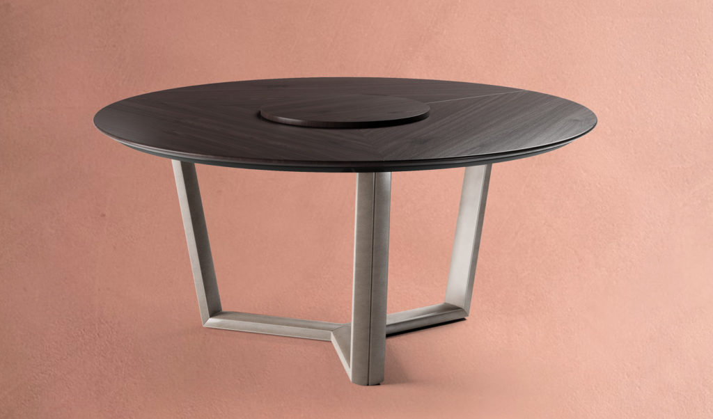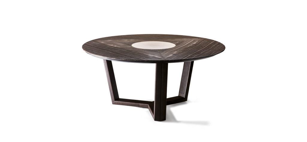 ROUND TABLE WITH OR WITHOUT LAZY SUSY, MADE OF PRECIOUS MATERIALS SUCH AS MARBLE FOR THE TOP AND METAL COVERED IN LEATHER FOR THE STRUCTURE. B140 IS A PRODUCT OF EXTREME ELEGANCE FOR AN EXQUISITE AND REFINED FURNITURE.