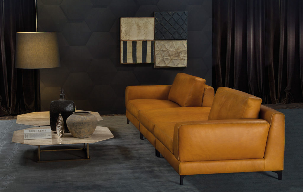 THE PRECIOUSNESS OF VEGETABLE SKIN, THE SPECIAL MEETINGS OF MATERIALS AND COLORS, THE GREAT FLEXIBILITY AND ITS CLEAN LINES MAKE THIS POUF THE RIGHT PIECE ALSO FOR LARGE HOSPITALITY AND COMMERCIAL SPACES.