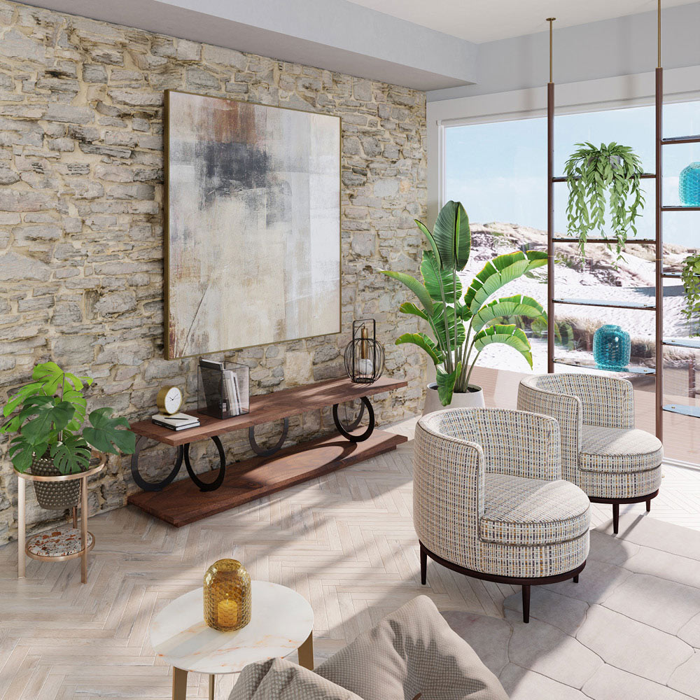 SOFT AND WELCOMING SHAPES FOR THIS ARMCHAIR SUPPORTED BY A LACQUERED METAL BASE. ONE OF THE MOST VERSATILE PRODUCTS IN THE COLLECTION, CAMY CAN ADD THAT TOUCH OF GLAMOUR TO ANY LIVING ROOM AND HOME OFFICE, AS WELL AS A HOTEL LOUNGE OR A WAITING ROOM.