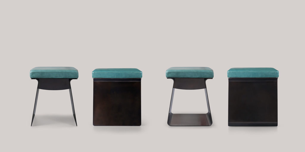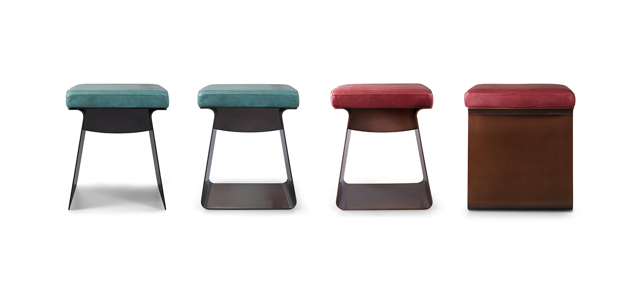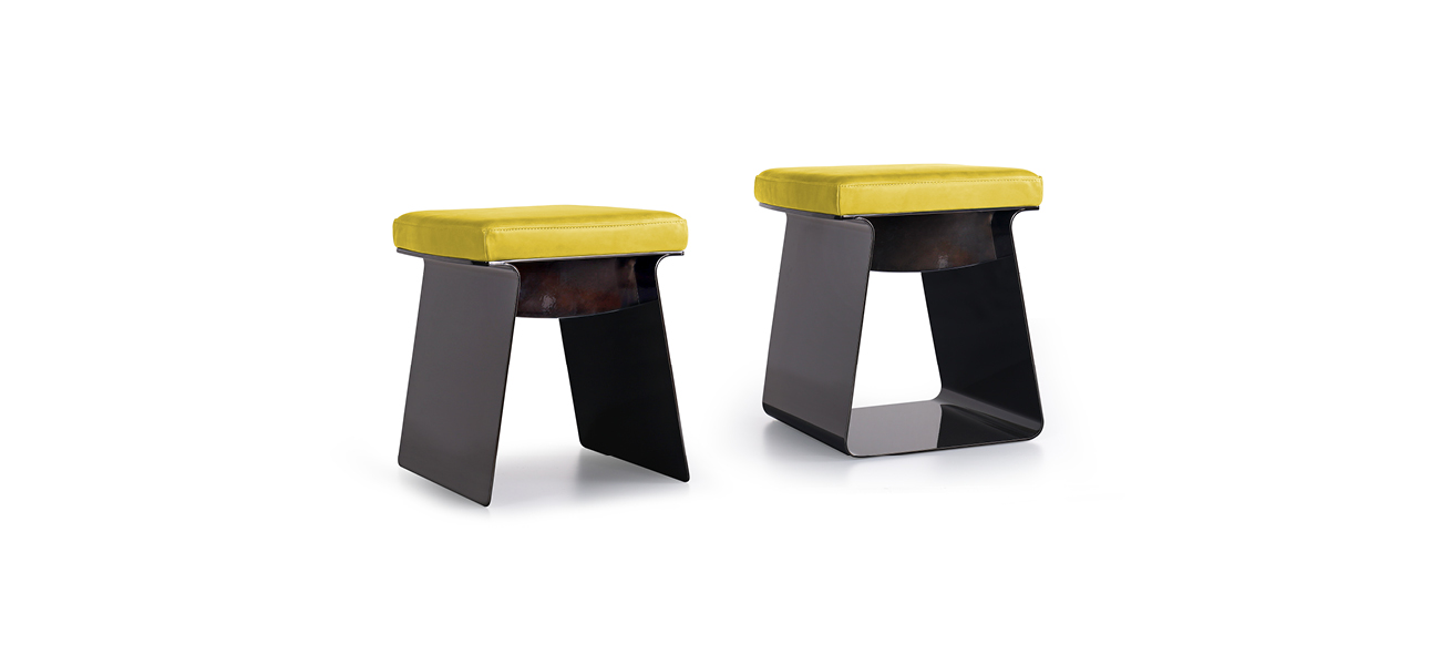 TWINS WHEN IT COMES TO SHAPE AND STYLING. THESE POUFS ARE CREATED AROUND A SINUOUS DESIGN THAT BRINGS OUT THE FULL RIGIDITY OF THE METAL SHEET THAT ADDS BODY AND STYLE, BUT ALSO BALANCE AND A SENSE OF LIGHTNESS AT THE SAME TIME.