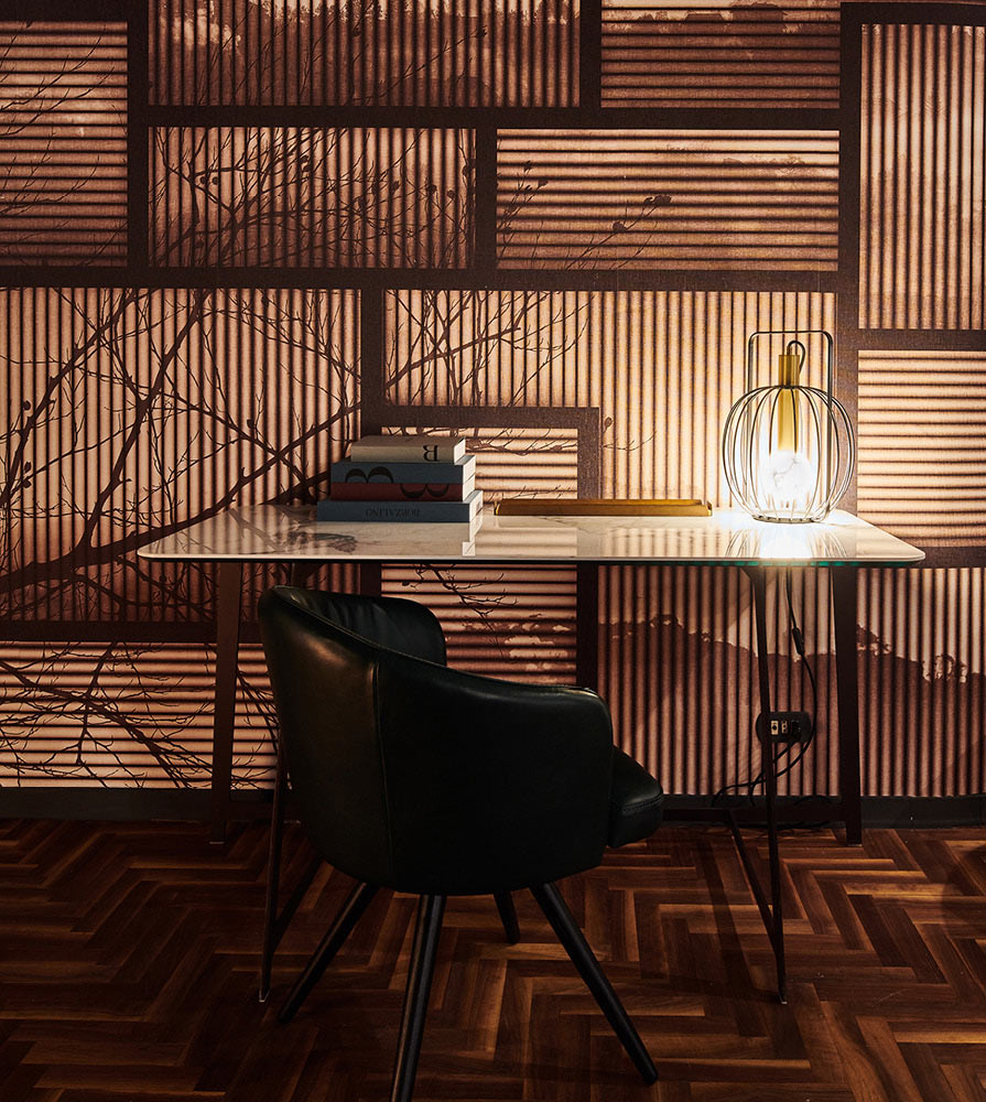 THE BIGGEST COUNTERTOP OF THE B_SERIES, THIS DESK IS PERFECT FOR A HOME STUDIO, A PARLOUR, AN OFFICE OR A HOTEL ROOM. MINIMAL GEOMETRIES EXPRESSED WITH IMPORTANT MATERIALS GIVE LIGHTNESS TO THIS REFINED DESIGN PIECE.
