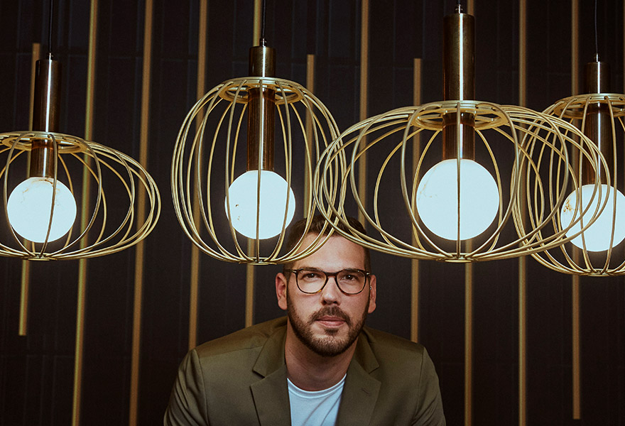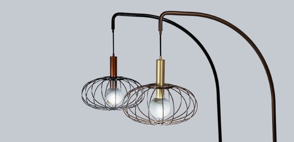 METAL STRUCTURE AND LAMPSHADE Ø40 OR Ø28 POWDER COATED – ITS 4W LED SOURCE CLEVERLY HOUSED IN ITS BRASS DOME – ALABASTER OR CRYSTAL SPHERE Ø11.