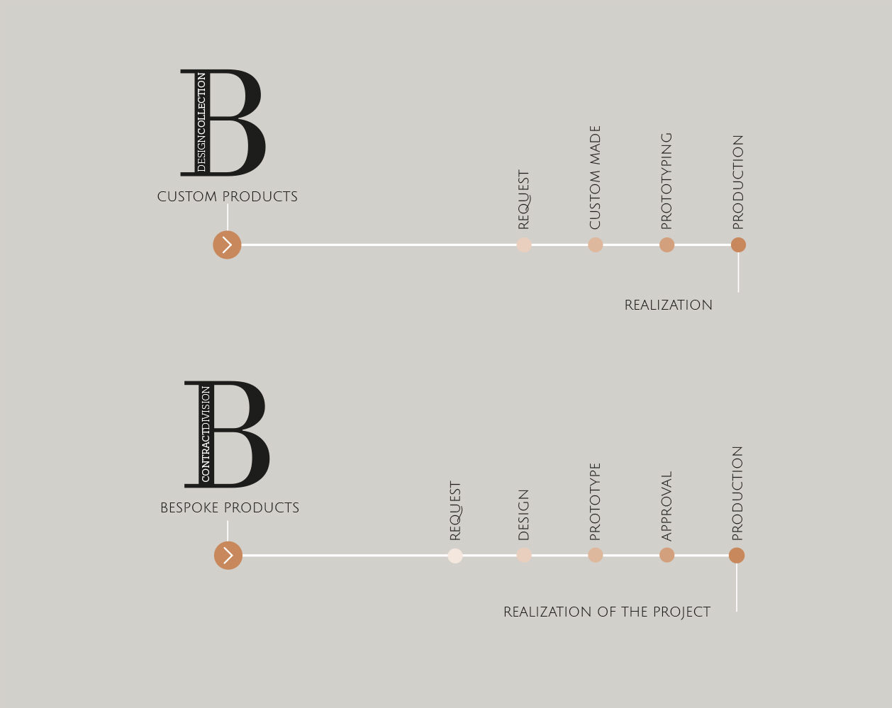 From a single sofa in a private home to a contract full interior, we are glad to provide the same commitment and attention to results. Aside from the possibility to share the 3D renders of all our products, we can realize customized furniture and complements, going from the editing of the existent product design, through the prototyping, and to the final realization. In bespoke products and interiors, we can design anew and produce in-house what is needed to fulfill your vision.